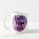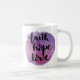 Esta caneca tem da "o amor da esperança fé" escrito belamente em ambos os lados! O fundo da aguarela é roxo.