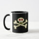 Um design estilizado do símbolo do pirata com os olhos vermelhos de incandescência e uma luz - esboço verde.