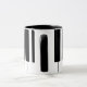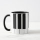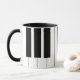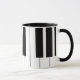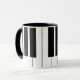 Teclado de piano preto e branco em uma caneca preto e branco.