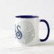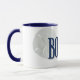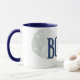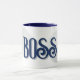 Chefe, caneca de café com design de areia branca e texto grande e ousado de "chefe". Estilo contemporâneo para o chefe escolhido em azul escuro e branco. O texto é feito em duas camadas para dar a aparência de uma sombra. Dois dólares de areia branca são o fundo e este estilo de caneca tinha um interior azul escuro. A design também funciona no tamanho maior da caneca e com outras seleções de cores.