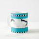 O trio dos pilates figura o círculo uma caneca em preto e branco com uma beira verificada. A cor do fundo pode ser personalizada.