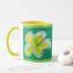 Caneca dos haicais da árvore do Plumeria. Beba um copo de Aloha e adicione alguma cor reconfortante a seu cuppa Joe da manhã