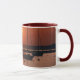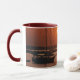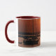 Esta caneca caracteriza o nascer do sol sobre veleiros na âncora.