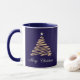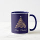 Árvore de Natal de ouro simples com Feliz Natal. A árvore de Natal é um desenho de linha com uma estrela no topo.