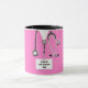 Apreciação, graduação, caneca de presente de aniversário ou de feriado por um médico criativo, com esfregões de hospital cor-de-rosa, estetoscópio e canivete suíço engraçado. Para personalizar o texto de edição para adicionar o nome do médico.