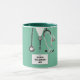 Apreciação médica, graduação, caneca de presente de aniversário ou feriado, com escovas hospitalares, estetoscópio e canivete suíço engraçado. Editar texto para adicionar o nome do médico.