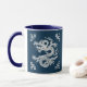 Uma caneca de café num dragão chinês em branco, seu corpo sinuoso coberto em escalas intrincadas. Com sussurros flamejantes, garras afiadas e movimento dinâmico, ele exude poder, misticismo e simbolismo tradicional oriental de força e sabedoria.