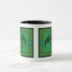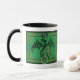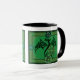 Dragão preto tribal com asas de nó celta verde. Sombras de nó verde e celta funcionam por trás e ao redor do dragão e quatro trevos de folhas.