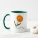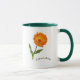 Duas flores laranjas com rótulo de texto curvo que diz "calendula"