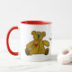 Esta caneca tem dois ursos peludos. Um com olhos azuis, um com olhos castanhos. O texto no meio pode ser removido ou alterado (coloque um nome?) se quiser. Esta caneca foi criada para o Dia do Urso de Teddy. Mas, os ursos de pelúcia são tão populares em todo o mundo que as datas variam e eu não coloquei nenhuma específica nesta caneca. Embora eu esteja mostrando isso em uma caneca vermelha, você pode comprar esta design em qualquer caneca colorida, assim como outros itens de bebendo oferecidos. Desenhado por Sheila Cicchi, Brownielocks.com. Todos os Direitos Reservados.