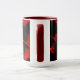 Carimbo vermelho escuro de uma imagem com formas e contraste que lembram alguns tipos de dunas.
