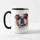 Aqui está a caneca perfeita para o dono do Bulldog! No meio está um retrato de um belo Bulldog Inglês vestindo óculos escuros. A imagem é impressa em dois lados, e no meio está o texto vermelho e preto que diz "Eu trabalho DURO para que meu BULLDOG tenha uma vida MELHOR". Bonita! *Se preferir alterar ou remover o texto, poderá fazê-lo.