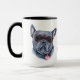 Aqui está a caneca perfeita para o dono do Bulldog francês! No meio está um retrato de um francês negro vestindo óculos escuros. A imagem é impressa em dois lados, e no meio está o texto vermelho e preto que diz "Eu trabalho com o DURO para que meu DOG tenha uma vida MELHOR". Bonita! *Se preferir alterar ou remover o texto, poderá fazê-lo.
