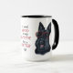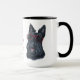 Aqui está a caneca perfeita para o dono escocês do Terrier Dog! No meio está um retrato de um Scottie preto vestindo óculos escuros. A imagem é impressa em dois lados, e no meio está o texto vermelho e preto que diz "Eu trabalho DURO para que minha SCOTTIE tenha uma vida MELHOR". Bonita! *Se preferir alterar ou remover o texto, poderá fazê-lo.
