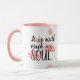 "Está bem com a minha alma" texto inspiracional sobre fundo branco com um gráfico de flor rosa contemporâneo. A flor pode ser excluída.