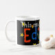 Uma caneca branca clássica com uma inscrição colorida, "Esta caneca pertence a Edward" feita de colagem de papel pintada à mão. (máquina de lavar louça e de micro-ondas seguras, assim como todas as nossas canecas).