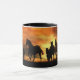 Linda, esta imagem vitoriosa do prêmio tem um rebanho de cavalos ao anoitecer com cores sudoeste na lata do céu. Uma linda caneca equina.