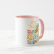 Esta caneca "Hey Sunshine, Continue Shinning" apresenta uma citação com flores retrorreflectoras.
