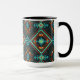 A bright, repeating diamond pattern with turquoise, red, blue and orange accents, creating an electric visual effect.