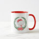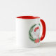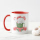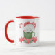 Este lindo design de Elefante Branco apresenta um elefante de aquarela vestindo um chapéu de Papai Noel saindo de uma caneca de Natal verde. Um nome pode ser adicionado em branco em um banner de fita vermelho. As costas têm um elefante a espreitar de uma coroa.