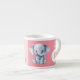 Caneca/xícara de criança / para crianças. "Espresso tamanho" caneca - tamanho perfeito para uma criança pequena. Nesta xícara de bebendo há um elefante fofo, com estrelas. Adicione um nome e inicial. Rosa e branco.