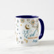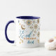 Caneca Personalizada Eid Mubarak com Padrão Geométrico Islâmico, Presente de Ramadan com Nome Personalizado, Celebre o Eid com estilo nesta Caneca Personalizada Eid Mubarak, lindamente desenhada, apresentando padrões geométricos islâmicos elegantes dispostos em forma de coração com lua crescente dourada e lanternas. A alça e o interior azul-marinho profundo adicionam um toque rico e festivo, tornando-a perfeita para celebrações de Ramadan e Eid.