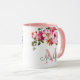Caneca personalizada com nome e monograma Elegant Girly Pink Rosa Floral. Características, rosas em cor-de-rosa claro e rosa forte em aquarela, arranjo floral botânico com folhagem em fundo branco. Você pode personalizar com seu nome e inicial do monograma com uma caligrafia manuscrita elegante e bonita. Esta caneca feminina é o presente perfeito para ela em aniversário, chá de noiva, casamento, Natal, feriado ou qualquer ocasião. Se precisar de ajuda ou itens combinando, por favor contate o designer.