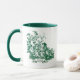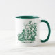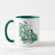 Uma legante caneca de café verde toile de jouy. Os impressões são uma fúria constante no momento, este é um elegante e ornamentado padrão de joias-de-jouy que apresenta uma bela cena romântica do campo francês. Este estilo padrão é atualmente tendência para decoração doméstica, roupas, móveis e Capas de ipad, convites e muito mais. Os designs são clássicos e eternos com cores impressionantes. Estas lindas canecas impressas são perfeitas como presentes para aniversários, feriados e qualquer ocasião especial como dia de os namorados e Natal.