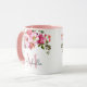 Caneca personalizada com nome e monograma Elegant Girly Pink Rosa Floral. Características, rosas em cor-de-rosa claro e rosa quente em aquarela, arranjo floral botânico com folhagem em fundo branco. Você pode personalizar com seu nome e inicial do monograma com uma caligrafia manuscrita elegante. Esta caneca feminina é o presente perfeito para ela em aniversário, chá de noiva, casamento, Natal, feriado ou qualquer ocasião. Se precisar de ajuda ou itens combinando, por favor contate o designer.
