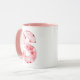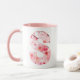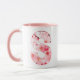 Mágula elegante de sakura com flores delicadas de cereja e na moda monograma. Personalize esta caneca S personalizada com um nome, traços positivos e data de nascimento. Uma perfeita caneca personalizada e presente de aniversário personalizado, esta caneca floral inicial faz uma única guarnição para o café ou chá do dia a dia.