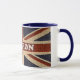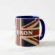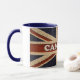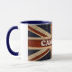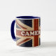 Caneca política da eleição geral do Reino Unido do ~ de Cameron. Bandeira retro de Union Jack com o subtítulo: Cameron no meio da bandeira.