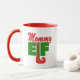 Mamãe Elf, esta bela design de Natal apresenta um calçado de elfo vermelho e verde com texto dizendo "Elf Mamãe".