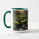 Caneca Emerald Serenity: Um Sapo Verde perto do rio,