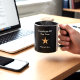 O empregado elegante das canecas de café do reconhecimento do ano que incluem um ouro coloriu modelos que da estrela e do texto você pode substituir com o nome. Projetado como uma recompensa para boas ações do escritório ou excelência na produtividade que você pode dar a seus empregados em uma maneira barata. O design é indicado em ambos os lados do copo de café para bebedores adequados ou canhotos.