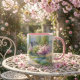 This soft watercolor landscape evokes a tranquil cottagecore dream, where a winding path drifts through flowering meadows toward peaceful countryside homes. Airy brushstrokes and gentle washes create a light, whimsical mood filled with blooming trees, pastel wildflowers, and fresh spring greens. Blush pinks, creamy whites, sky blues, and tender yellows blend seamlessly, giving the scene an enchanting, storybook quality. The composition feels calm and inviting, capturing the romance of slow rural life and the quiet beauty of nature awakening. With its folk-inspired charm and serene atmosphere, the artwork radiates warmth, nostalgia, and a sense of peaceful escape into a blossoming countryside. AI generated artwork.
