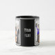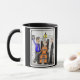 Uma caneca com um desenho engraçado sobre um prisioneiro, supondo que Deus o salvará de ser punido por seus crimes A imagem, o fundo e o texto podem ser personalizados. Arte original de BD Cartoons.