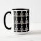 Este design de caneca apresenta o design de um ornamento branco em forma de uma árvore de Natal decorada.