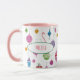 Esta linda caneca de natal com estilo retrô apresenta meus próprios ornamentos desenhados à mão, e sua personalização em um oval da Era Espacial. Coloque seu nome, ou o nome de um amado, nesta caneca de Natal retrógrada e ilustrada à mão — e clareie sua cozinha de férias! Estes Enfeites de natal desenhados à mão permitem-vos trazer a alegria do meio século para a vossa casa.