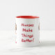 Uma linda enfermeira de desenho animado está em cada lado desta caneca, com o texto em vermelho no meio, Enfermeiras fazem as coisas melhor. Perfeito para a enfermeira em sua vida!