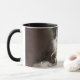Não há maneira mais bonita do que começar o dia com uma xícara de café nesta caneca de gatinho precioso! Esta pintura apresenta um gatinho liso preto e branco, lúcido e divertido, pego no meio de um embuste, enquanto toca com um monte de fita. O olhar do gatinho está focado na fita, como parece estar perdido na alegria do momento. O fundo da pintura é escuro, o que ajuda a acentuar a energia lúdica do gatinho. No geral, "Tangled Up In Fun" evoca uma sensação de alegria e inocência, capturando a curiosa e brincalhona natureza de um jovem felino em jogo.