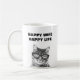 A caneca preto e branco do gato da VIDA FELIZ FELIZ da ESPOSA para o café, o chá e o outro bebe. Design animal engraçado do copo do impressão com citações cómicos/dizer. A festa de casamento bonito, o noivado, o aniversário ou a ideia para newlyweds, noivos do presente do chá de panela, casal, contrataram o casal, os honeymooners, o marido e a esposa, a noiva, a esposa, a irmã, gatinho da filha etc./gatinho Nerdy que veste a foto dos vidros. Drinkware 11oz feito sob encomenda para a casa ou o escritório. Humor do casamento.