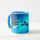 CANECA DO AZUL DE DIVERS´. Um mergulhador de mergulhador dos desenhos animados é seguido por um tubarão perigosamente grande. O mergulhador está olhando fixamente em um peixe pequeno curiosa e o peixe abre seus olhos grandes quando vê o tubarão que segue o mergulhador. Uma caneca projetada em máscaras diferentes do azul, também punho do de e interior é azul. Você pode escolher dos estilos diferentes das canecas e os colords, lá são igualmente a escolha de uma caneca morphing.
