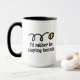 Caneca de presente engraçada para jogador de tênis com bola de tênis amarela estilo cartoon saltando na quadra. Acompanhada por uma legenda humorística, piada, citação, ditado ou outro texto. Beije meu ás! Ideia de presente de aniversário divertido para crianças, mãe, pai, treinador, amigo, chefe, colega de trabalho, etc. Louças personalizadas para casa ou escritório.