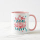 Caneca de café da temporada de Férias Divertidas para qualquer um. Com o padrão azul verde, vermelho escuro e rosa poeirento esfregando flocos de neve rosa, e esta é a estação para o texto de aspas de Eggnog picadas. Design de hipster engraçado, moderno e caprichoso para o amante dos temas de inverno e feriados de dezembro.