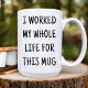 Esta Coffee Mug apresenta um Design de texto Engraçado. Disse: "Trabalhei toda a minha vida por esta caneca". A melhor caneca engraçada para o professor, enfermeira ou colega de trabalho.