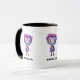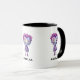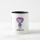 Uma caneca com uma bela ilustração. Monstro de Frankenstein com cabelo rosa e roxo e um terno e gravata.