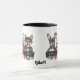 Esta caneca do Dia das Bruxas tem uma imagem de três cachorros assustadores vestidos de roupa assustadora. Um segura uma placa que diz "Hocus", outro diz "Fright", e o terceiro diz "Howl". A imagem é impressa duas vezes na caneca, com seu nome ou outro texto personalizado entre eles. Não é a sua caneca de Halloween!