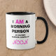 Esta engraçada caneca de uma pessoa da manhã mostra as palavras "Eu sou uma pessoa da manhã. Seja avisado que a manhã começa ao meio-dia." A tipografia rosa-quente e preta é usada para criar este design divertido. Esta é uma caneca excelente para qualquer um que não gosta muito da manhã e quer dizer ao mundo que eu pareço uma pessoa matinal de uma forma totalmente nova. Palavras e Design de Copyright Kathy Henis