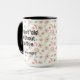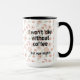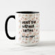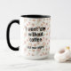 Essa bonito caneca floral rosa e preto parece inocente até que você leia a frase: "Eu não vou morrer sem café, mas você pode." Eu gosto do choque do padrão floral cor-de-rosa macio com os elementos negros e palavras pintadas por spray. Como ela... Engraçado e fofo por fora, com a boca de um caminhoneiro! Isso daria um presente de excelente para a mãe no dia de as mães, ou qualquer senhora que desesperadamente precisa de seu café para começar o dia. Você pode facilmente personalizar e mudar a frase se quiser.