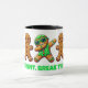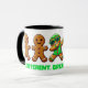 Reparem no escritório de Natal com esta caneca festiva e engraçada, que apresenta uma fileira de homens de gengibre idênticos. A mania da mesmice é quebrada pelo homem do pão médio, que pratica uma fantasia verde açucarada e óculos de sol legal enquanto ele está a abusar entusiasticamente. Quebre o molde do cortador de biscoitos. Bid ciao para a conformidade. Atrevo-me a ser diferente! Design © W.H. Sim. Mais informações em zazzle.com/word2art
